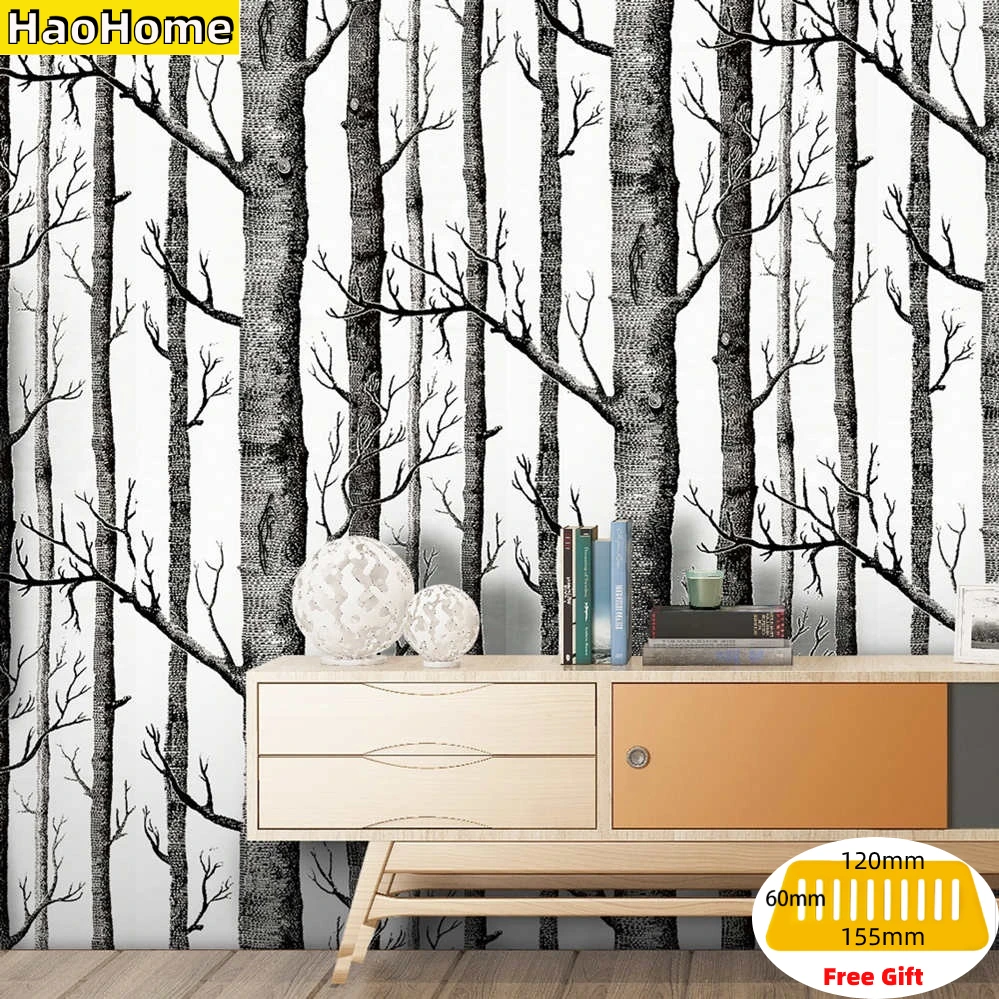 Best Painting Supplies & Wall Treatments from HaoHome Store for Stick Wallpaper Shelf-Liner Furniture Wood-Wall-Covering Kitchen-Cabinet Birch-Tree-Peel