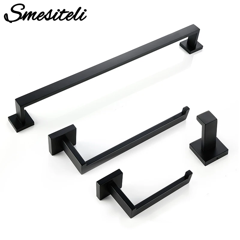 Best Home Improvement from Smesiteli Official Store for Robe Hook Paper-Holder Towel Rail-Bar-Rack Bar-Shelf Bathroom-Hardware-Set Tissue Black